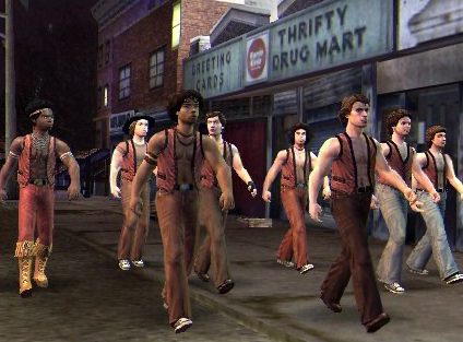 The Warriors A mediados de octubre del año pasado apareció en PS2 y Xbox el videojuego The Warriors, de Rockstar Toronto, una notable adaptación de una mítica película de Paramount Pictures realizada en 1979 por el director Walter Hill y nombrada por la edición de 2005 de Family Media Guide como una de las diez películas más violentas de todos los tiempos. Para crecer en tu pandilla tendras que dar palizas a los componentes de las bandas rivales y sobrepintar las pintadas de las otras bandas con la tuya, en las misiones tienes libertad de movimientos dentro de la zona que tienes para moverte. Tendrás que "drogarte" para aumentar tu salud y comprar sprays para realizar pintadas o para pintar las caras de tus contrincantes en medio de la pelea. |