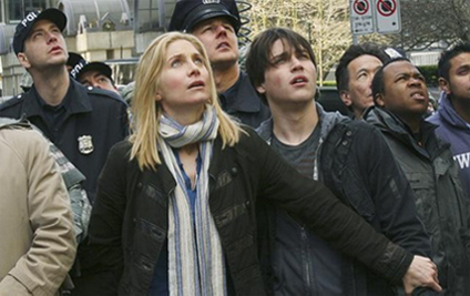 Hablando de expectativas, parece que la cadena española Cuatro tiene muchas esperanzas en Flash Forward, pues compró los derechos de la serie sin haber visto antes la audiencia en Estados Unidos y tienen previsto emitirla, en principio, este mismo otoño. V Parece que estamos en la época de los re-makes, esta serie no es una excepción. Quizás los ya un poco mayores, sin ofender a nadie, se acuerde de una serie americana de los 80 donde unos alienígenas venían y... ¿Verdad? |