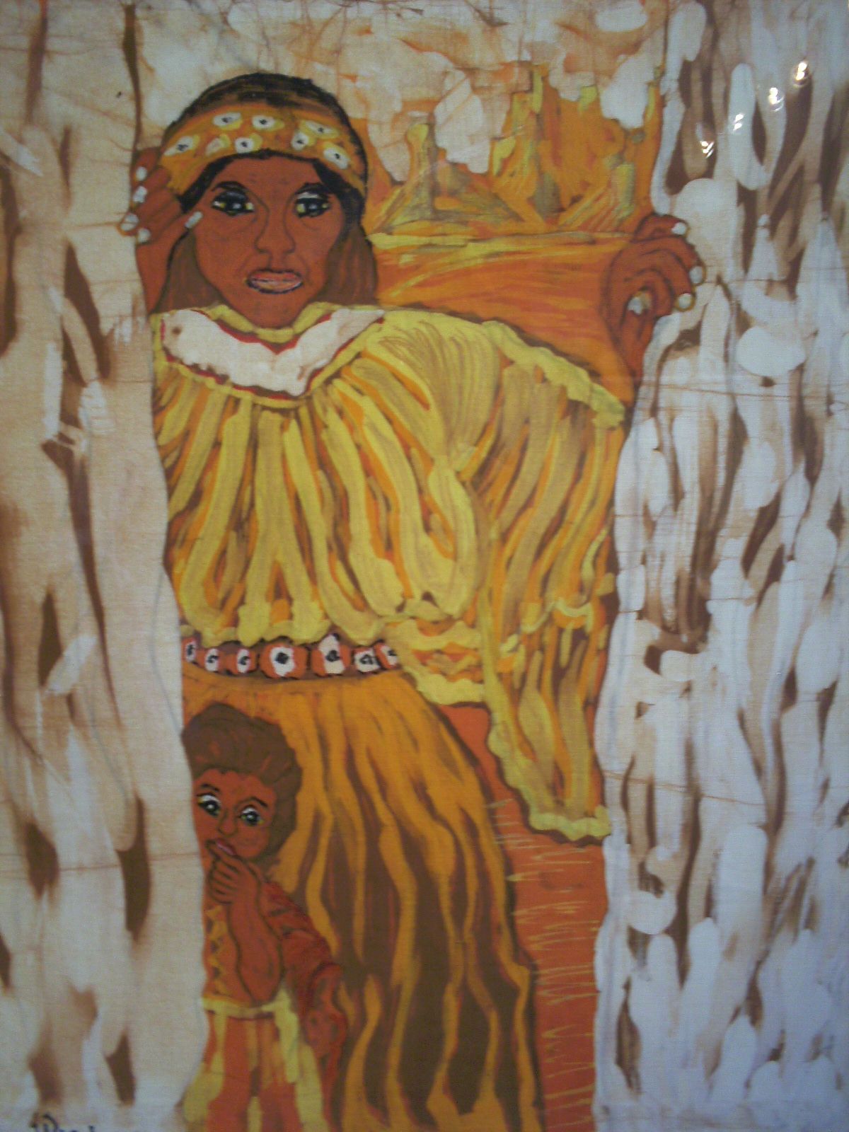 **Técnica de Batik por Wally Schmidt e Idea, texto, traducción al español por Fred Schmidt.