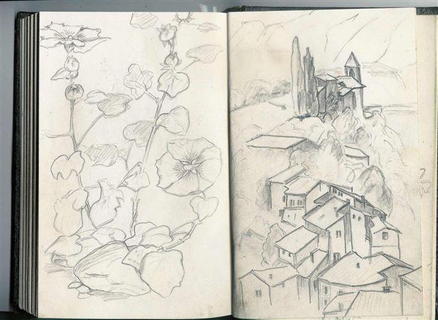 También tiene empleados bocetos realizados a lápiz, como flores, retratos, que posteriormente pueden aparecer en alguna pintura.