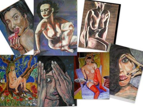 Estas pinturas se tratan de una series de desnudos y retratos en pastel, salvo la que se encuentra en la esquina inferior izquierda, que es La mujer bajo el olivo, realizado en óleo.