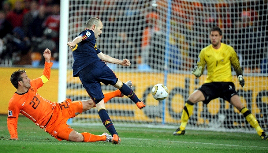 El gol de Iniesta en la segunda mitad de la prórroga puso punto y final a un partido en el que la Roja se impuso con su fútbol y logró torcer a la naranja mecánica que se dedicó a repartir patadas y patadas para detener al toque español.