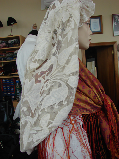 *Camisas de encajes y puntillas. Cofias, pañuelos y mantones de Manila.