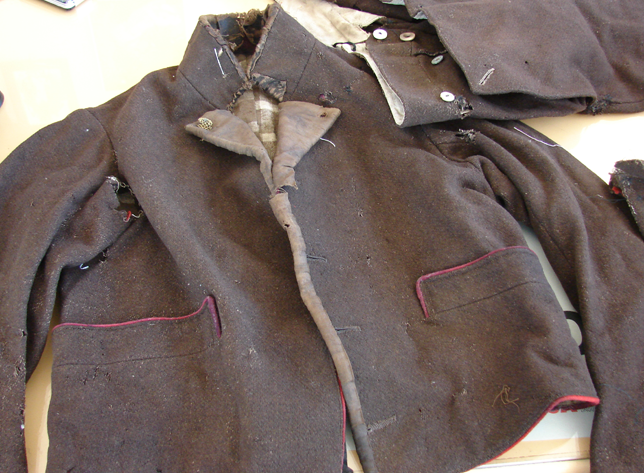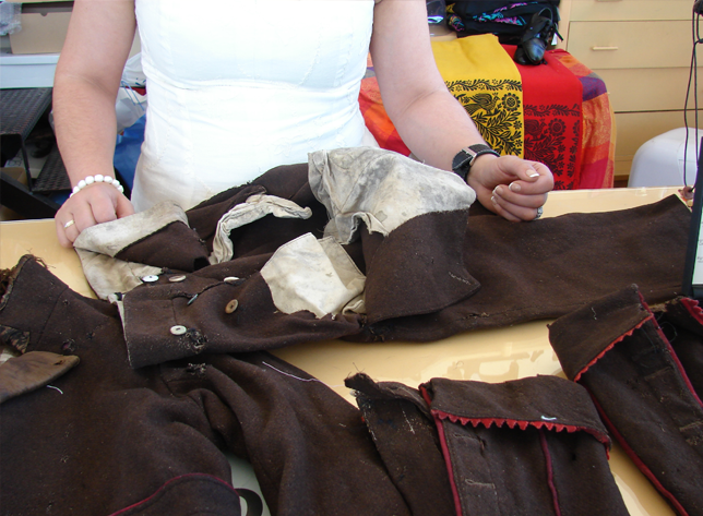 *Aquí nos muestra Montse un ejemplo de traje de niño con 150 años de historia que deberá reproducir. Se saca el patrón del modelo y luego comienza la búsqueda de los materiales que deben ser exactos al original.