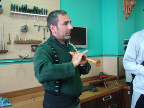 Como niños sueltos en bazar, comenzamos a investigar todo el taller, tocando (sin romper, claro) partes de roncos, punteiros y la cantidad de maquinaria dispuesta estratégicamente, con el objeto de optimizar el trabajo. Un obradoiro donde se encuentra la herramienta tradicional y lo último que provee la tecnología. Cuenta con varios tornos, brocas cañón con los que agujerea las piezas de madera con un acabado pulido, sin asperezas. Con una enorme paciencia nos explicó todo en cuanto al arte de fabricar gaitas