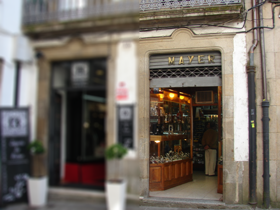 Aún sigue siendo atendido por uno de los tantos Mayer que forman parte de una casta de relojeros, orfebres y joyeros compostelanos, Don José Mayer, relojero restaurador. Oficio que le viene de familia y aprendió de su padre con solo 14 años. Toda una vida dedicada a mantener “esas maravillosas máquinas del tiempo en su justo instante”. Hay más familia, otro de los Mayer que ostentan tradición y calidad en Santiago, fue el encargado de realizar en plata maciza el martillo con el que se da apertura a la Puerta Santa, acto con el que se da comienzo al Año Jubilar. También tuvo la tarea de “vestir” con plata y pedrería al Santo Patrono de Compostela. Capa que miles de peregrinos y otras figuras eclesiásticas como dicta la antigua costumbre religiosa, realizarán largas colas para poder tocar y besar. Pero seguimos en la búsqueda... Nuestros pasos nos llevaron un poco más allá. A Antonio Mayer, “Tonio” donde tiene su taller en el Concello de Teo, a pocos minutos del centro de Santiago, en medio de un entorno de monte y aldea, un encanto para los sentidos del artista. Allí descubrimos al hombre que mantiene viva no solo la tradición familiar... sino que rescata y revive la tradición del accesorio del traje típico gallego.