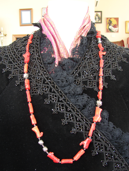 *Collares de coral y abalorios de plata. Broches para capas y dengues.