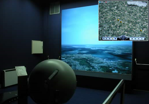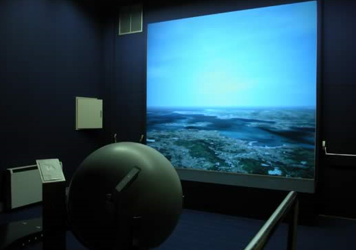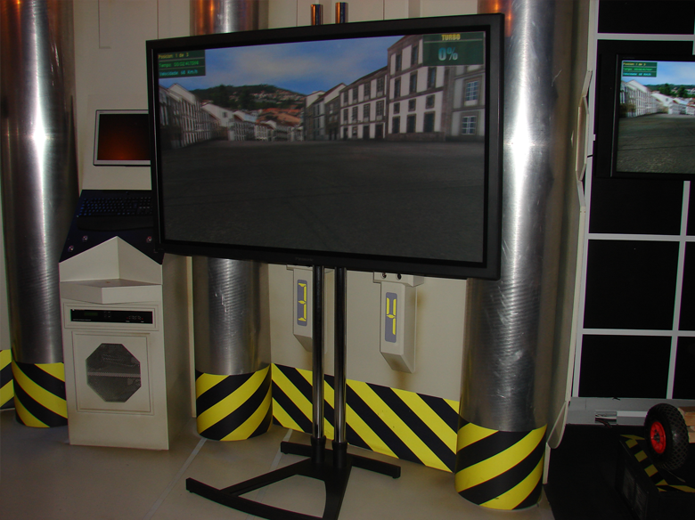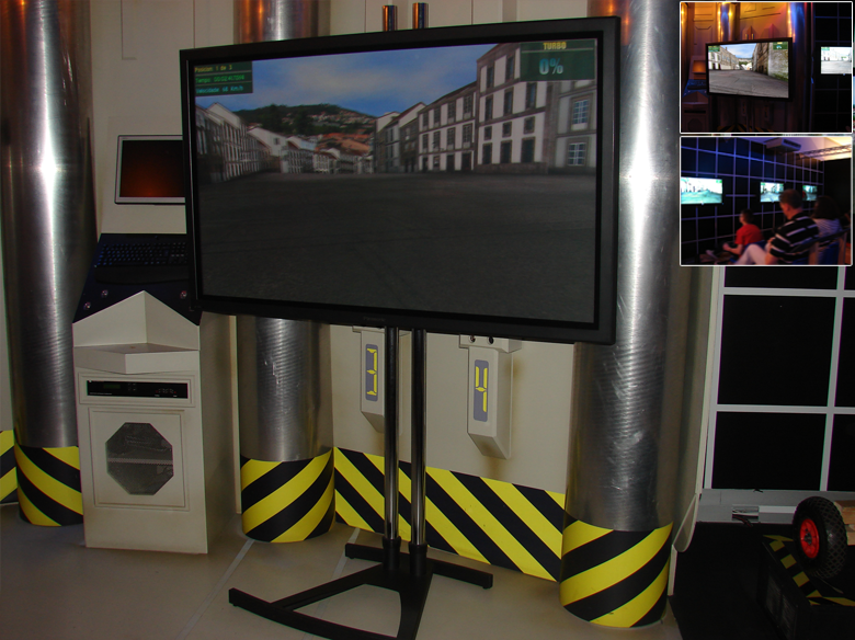 Llama la atención una enorme esfera delante de la pantalla de proyección, con la cual se puede desplazar el mapa por medio de movimientos táctiles. Pasaremos por diferentes ciudades y albergues, observando panorámicas de 360º y seguiremos hasta llegar a Santiago de Compostela.