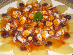 *El pulpo da feira, es una de las recetas por excelencia de Galicia, suele estar presente en muchas de estas fiestas para darse un gustillo con una ración. Aunque por supuesto tiene su fiesta donde se lo encontrara en casi todos los bares y restaurantes hasta como tapa.