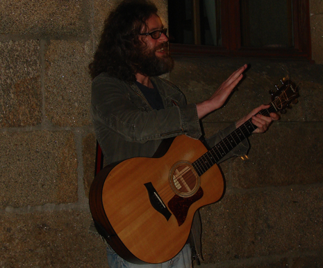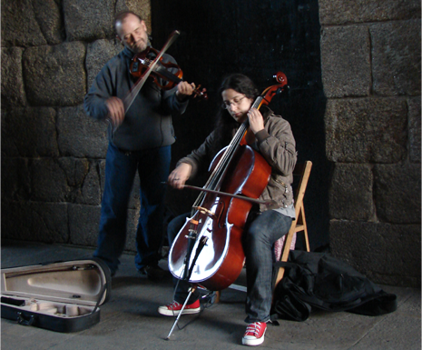 Como tantos que rodean la zona Monumental en busca de ganarse el día, aunque nos comentaba lo difícil que se lo ponen las autoridades a los dueños de pubs y bares con las reglamentaciones sobre la insonorización del local. En su momento podían cantar allí, para los clientes y de paso ganarse el dinerito... lejos de las lluvias incesantes de nuestro Santiago, sobre todo en invierno, que se hace muy duro trabajar en las rúas. Esperemos que los muchachos de la Administración aflojen la mano. Que tal como Ian... los músicos callejeros son parte del patrimonio compostelano.