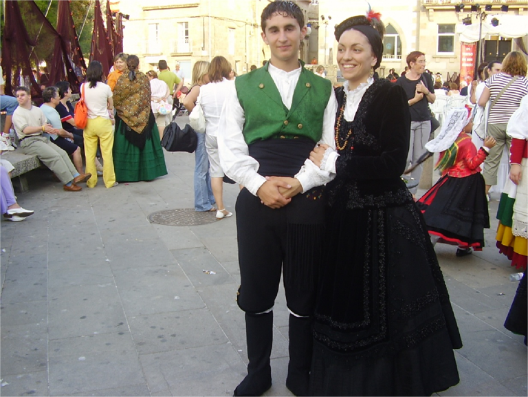 *María y Antonio, dos de los componentes de Ximiela, en el Desfile del Traje del 2006.
