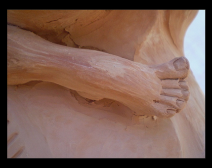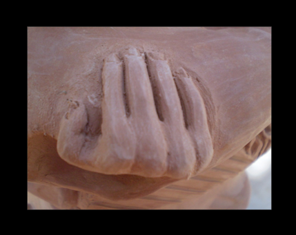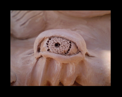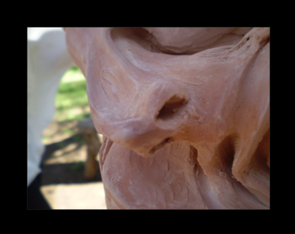 Por el dolor de lastimar o de ser lastimado. La boca cerrada: de los que no dicen nada. Las ramificaciones de las venas, el embarazo una piernita de bebe. Manos saliendo de adentro expresando la impotencia. Nariz aún creyendo que es una cuestión de olfato. Ojos, pensando que mirando a los ojos… es una cuestión de suerte. El oído que no quiere escuchar.