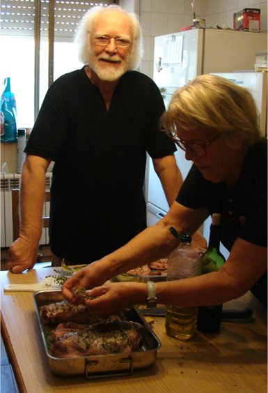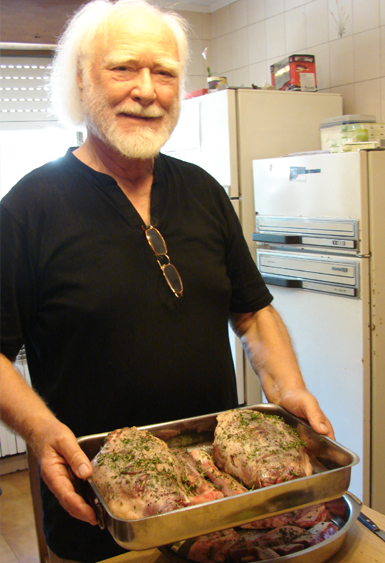 3. friccionar la pierna generosamente con aceite de olivas, sal y pimienta y con la hierbas cortadas (es mejor marinar la pierna en aceite de olivas y las hierbas durante algunas horas, 24 si posible).