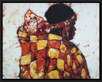 El Batik es un trabajo de pintura en etapas sobre una tela, representando en este caso, una mujer indígena con su bebé a la espalda.