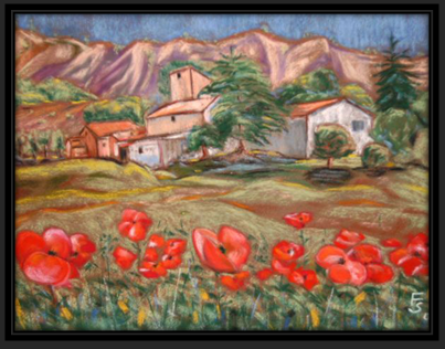 Presenta un paisaje donde predominan las amapolas. Realizado al pastel.