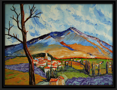 Seguimos fieles a los paisajes provenzales. Esta pintura llamada “Le Mont Ventoux”, un detalle de la región son los campos de lavanda (Oleo).