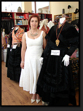 La primera que aparece en la lista: Montse Liñares, propietaria de Casa Bulideira, de Santiago de Compostela. Gran diseñadora de tajes tradicionales gallegos e incansable defensora de mantener fiel y muy viva la llama del atuendo original, hasta el más pequeño detalle.