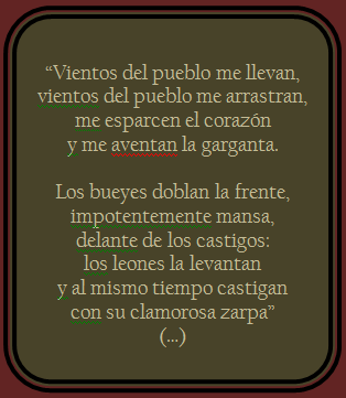 TODO ERA AZUL hasta el inicio de la guerra. Todo era azul hasta que le tocó vivir un momento histórico marcado por el odio, venganza y violencia bélica. Durante este periodo, la poesía de Miguel Hernández adquiere un carácter combativo, entregada por entero a la exaltación de la causa del pueblo frente a la amenaza fascista. El libro Vientos del Pueblo (1937) esprueba de ello.