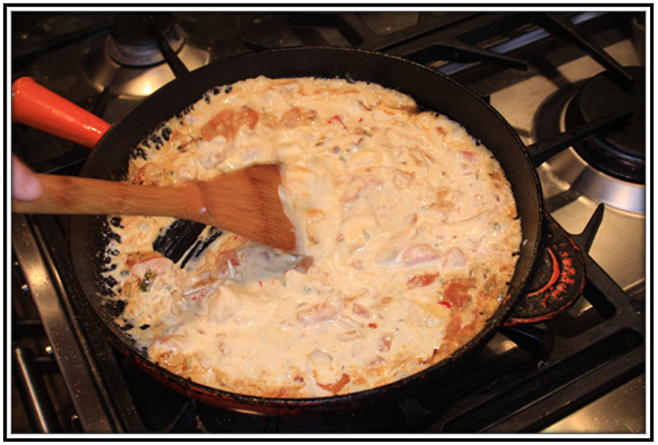Colocar las papas en agua con sal. Cuando estén blandas se les quita la cáscara y puede este plato prepararse con las papas enteras o picadas en cuadritos (mi preferencia es en cuadritos). Aparte con las cebollas, el tomate, el aceite y los aliños, hacer un sofrito. Cuando esté listo se le agrega la leche y las papas y se deja conservar por unos cuantos minutos. Luego se le ralla el queso y al momento de servir sobre cada plato se derrama un poquito de crema de leche.