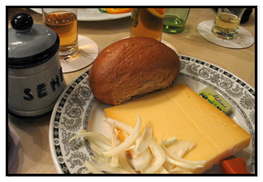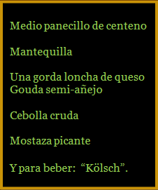 O tal vez hayas pedido “nen halve Hahn” (medio pollo) y esperes que te traigan medio pollo asado. De nuevo te extrañas muchísimo cuando el camarero te trae un plato con lo que ves en esta imagen: