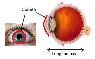 Esta figura muestra la situación de la córnea en el ojo y la definición de longitud axial