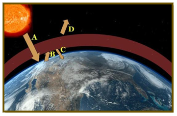 De toda la radiación que emite el Sol, solo una mínima parte llega a la superficie de la Tierra y eso es debido a la atmósfera, la suma de varias capas compuestas por diversos gases esencial para la vida en nuestro planeta. Este escudo protector natural, además de bloquear los objetos que impactan a gran velocidad desde el espacio como los meteoritos, actúa como un filtro de la radiación nociva para los seres vivos permitiendo solo el paso de un tercio de la misma, el resto de radiación es absorbida o reflejada por las nubes y otros gases de vuelta al espacio.